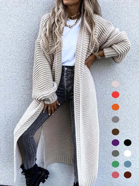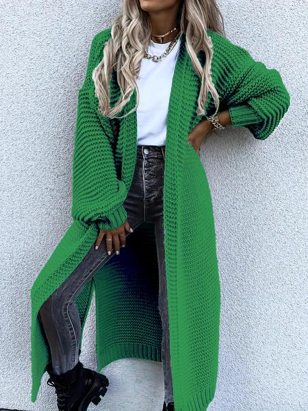 The Luxe Long Chunky Knit Cardigan, Elegant Balloon Sleeve Edition